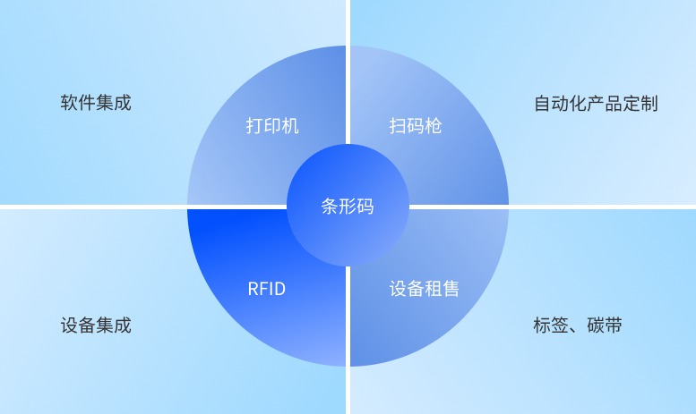 上海鋯瑞技術有限公司業務分為9大模塊,條形碼,RFID,打印機,掃描槍,軟件集成,設備集成,自動化產品定制,標簽碳帶和設備租售。 以條形碼和RFID為起點,以打印機,掃描槍和標簽碳帶為基礎,逐步技術延伸,層層遞進,實現識別軟件系統開發,自動化檢驗設備集成,自動化產品定制等自主創作研發能力,滿足各類企業物聯網應用需求。